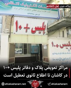 وی با بیان اینکه به منظور جلوگیری از شیوع بیشتر ویروس کرونا تمامی مراکز خصوصی مرتبط با پلیس در کاشان از امروز تا اطلاع ثانوی و برگشت کاشان به وضعیت عادی تعطیل است، ابراز داشت: این مراکز شامل آموزشگاه های رانندگی، مراکز پلاک گذاری و همچنین دفاتر پلیس+۱۰ است.