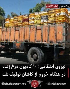 سرهنگ حسین بساطی در گفت و گو با پایگاه خبری اهل کاشانم از توقیف ۱۰ کامیون مرغ زنده در هنگام از خروج از کاشان در شب گذشته خبر داد.