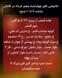 خ سلمان ، تابنده، فاز ۱ ناجی آباد خ پیروزی ، بلوار الغدیر تا اولین بریدگی