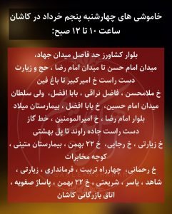 جدول خاموشیهای کاشان در روز چهارشنبه ۵ خردادماه اعلام شد