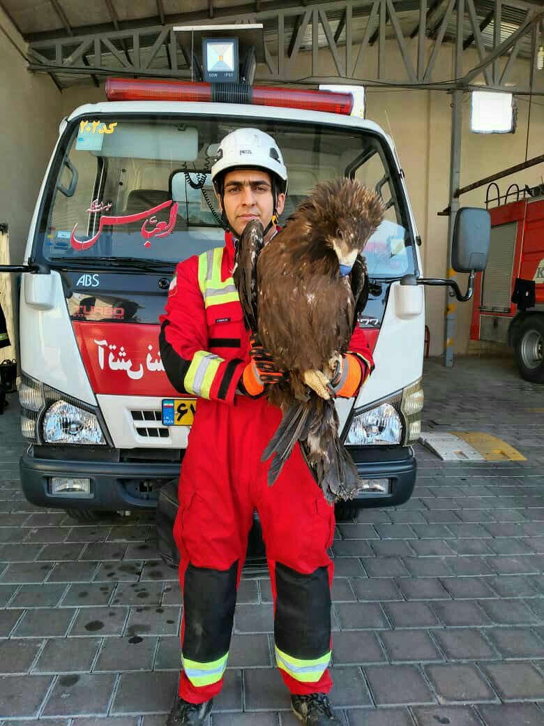 زنده گیری عقاب در کاشان توسط آتش نشانان کاشانی