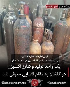 غلامحسین بخردی در گفتگو با پایگاه خبری اهل کاشانم با اشاره به پلمب ۶۱ عدد سیلندر گاز اکسیژن در منطقه کاشان اظهار داشت: یا واحد تولید و شارژ اکسیژن نیز به مقام قضایی معرفی شده است.