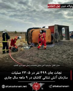 نجات جان 499 نفر در 2305 عمليات سازمان آتش نشانی کاشان در ۹ ماهه سال جاری