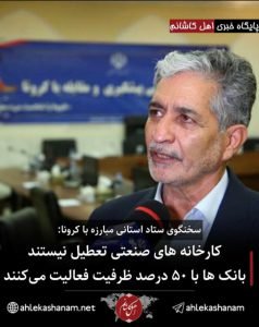 سخنگوی ستاد استانی مبارزه با کرونا افزود: طبق مصوبه ستاد ملی مبارزه با کرونا کارخانجات و واحدهای صنعتی تعطیل نیستند و کمافی السابق با رعایت کامل دستورالعمل های بهداشتی مشغول فعالیت خواهند بود.