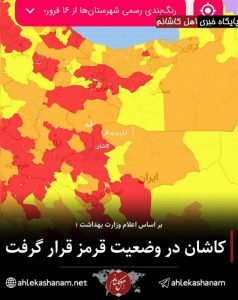 از دقایقی قبل و بنا بر اعلام وزارت بهداشت، کاشان در وضعیت قرمز کرونایی قرار گرفت.