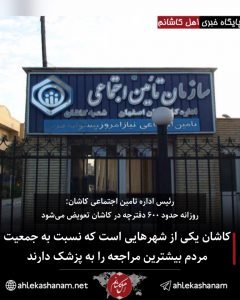 کاشان یکی از شهرهایی است که نسبت به جمعیت مردم بیشترین مراجعه به پزشک دارند