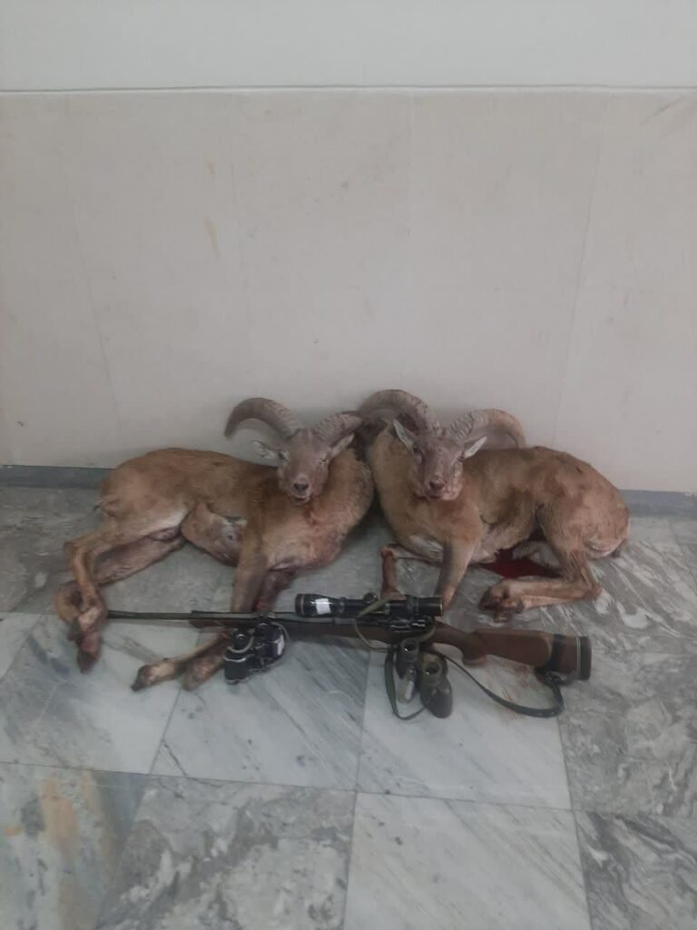 ۴ شکارچی متخلف در کاشان دستگیر شدند/ کشف دو راس لاشه قوچ وحشی